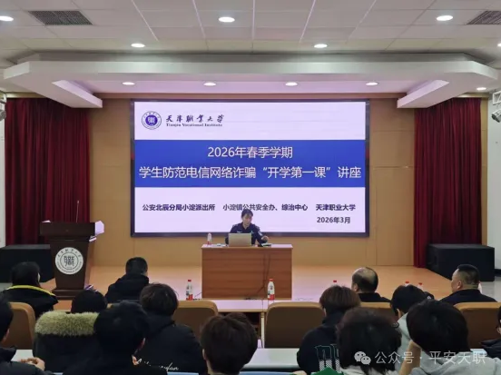 为深入学习贯彻习近平总书记关于坚决遏制电信网络诈骗犯罪多发高发态势重要指示的要求,落实市教委和校党委关于安全教育决策部署,持续增强我校师生电信网络诈骗防范意识,提高对新型电信网络诈骗手法的识别能力。3月11日,学校安全部、学工部、机电学院联合公安北辰分局小淀派出所、小淀镇公共安全办与综治中心等单位共同开展天津职业大学防范电信网络诈骗“开学第一课”主题讲座,机电学院师生400余人参加。